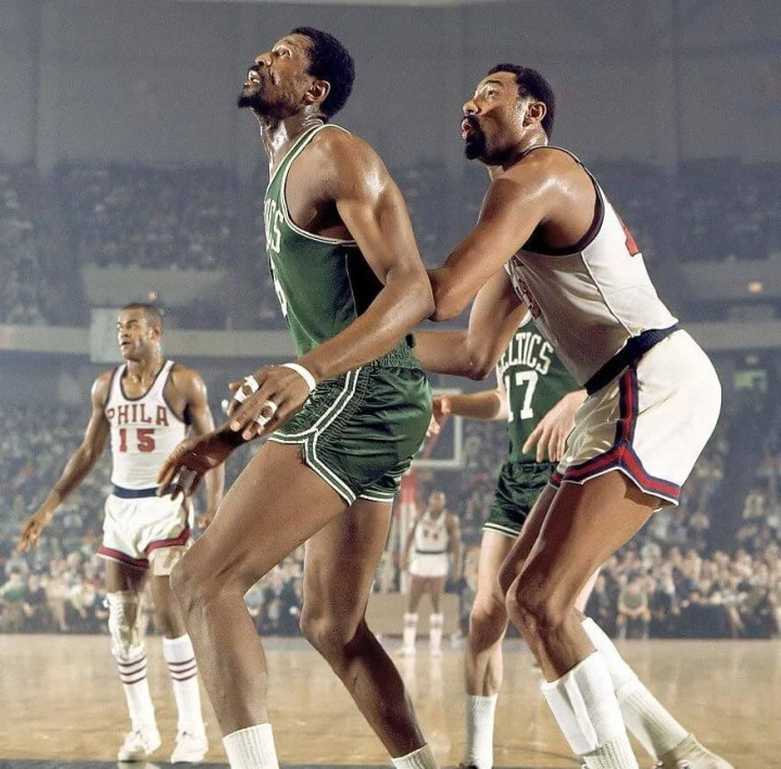 拉塞尔抢篮板就像在玩捉迷藏。职业生涯场均22.5个篮板,季后赛更是飙升到24.9个。最恐怖的是他的连续起跳能力,能在第一次封盖后立即起跳抢下篮板。1960年总决赛抢七,他狂揽35个篮板,把老鹰内线安排得明明白白。他的防守理念很直接:"投不进的球都是我的。"这样的统治力,让他在13年里拿了11个冠军。