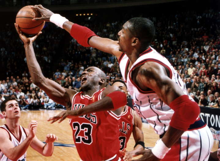 大梦抢篮板就像在跳华尔兹。职业生涯总篮板13748个,其中前场篮板3429个。1990年对阵勇士,他抢下29个篮板还送出6记火锅。最恐怖的是他的篮板嗅觉,总能出现在最该出现的位置。他的梦幻脚步在抢篮板时同样适用,能用假动作把对手骗开位置。这样的技术和意识结合,让他成为史上最全能的篮板手。