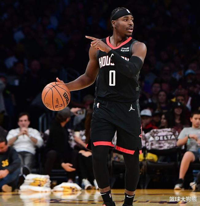 作为本场比赛火箭队主力控球后卫的22岁新人阿门・汤普森,他的身高也达到了2米03,在NBA当中也算是前锋级别的身高了。