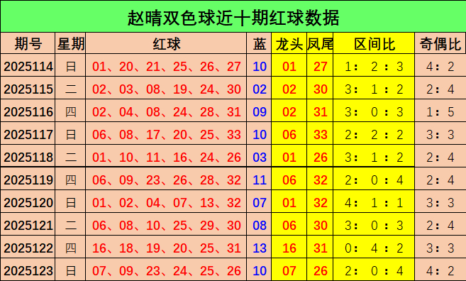 124期赵晴双色球预测奖号:龙头凤尾推荐
