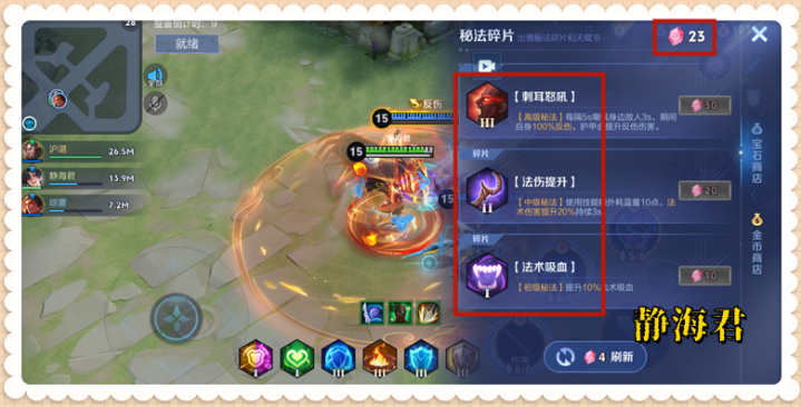 第三,通过购买钥石,可以召唤出限时野怪,击败后可以获得宝石,用宝石刷新秘法商店后,就可以刷出3条秘法碎片。