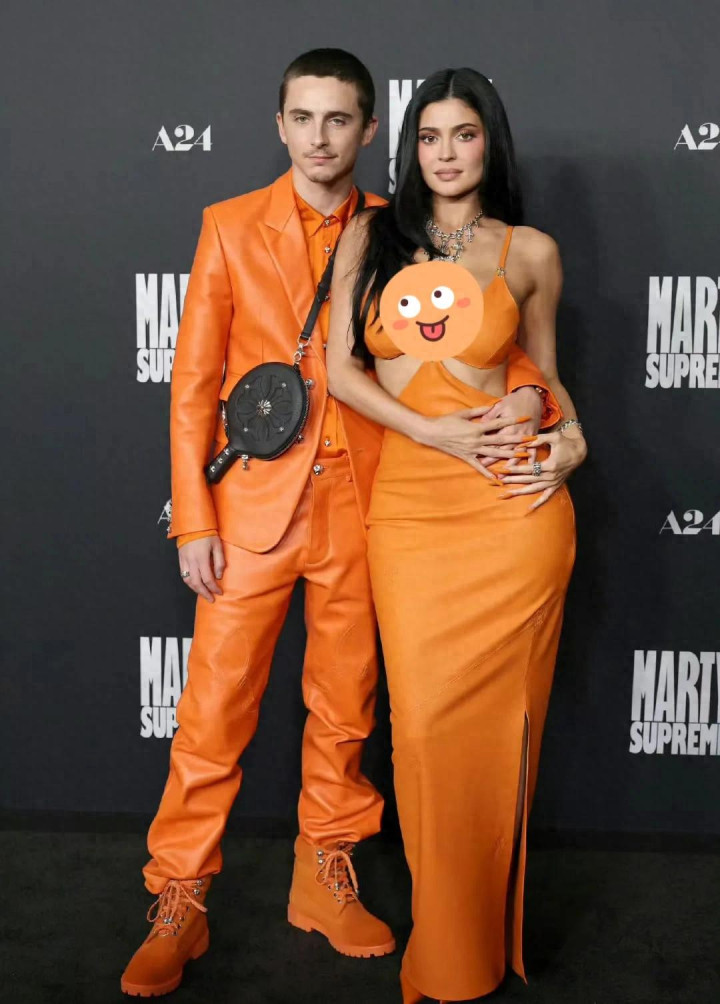 今天是甜茶(提摩西查拉梅)主演的电影《至尊马蒂》在洛杉矶的首映,作为主演甜茶现身红毯,陪同他一起的还有他的女朋友金小妹(凯莉詹娜)! 之前两人被传言分手,如今同框走红毯,也算是破了分手的传闻,而且他们还穿了定制款的爱马仕橙色的情侣装大秀恩爱。 甜茶从头到脚都是橙色,除了身上的乒乓球拍形状的黑色背包,金小妹则穿着性感深V裙子,大秀事业线,就连指甲做的都是橙色系,两人在红毯上亲密搂抱,大方放闪。 金小妹这条裙子不仅前面暴露,后背那里也是一览无余,真是充分展示了她的好身材。虽说是电影的首映礼,可大家...