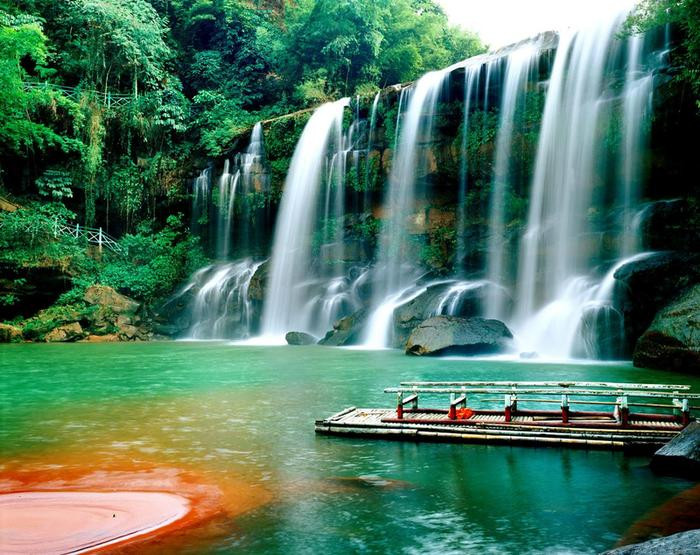 贵州长征文化旅游(集团)有限公司市场部产品经理郑燕说,遵义市赤水丹霞旅游区,由赤水大瀑布、佛光岩、燕子岩三大景区组成,是中国·赤水丹霞世界自然遗产地的核心景区,也是国家5A级旅游景区。“被誉为‘世界丹霞第一瀑’的赤水大瀑布,无疑是这幅丹霞画卷上最动人心魄的一笔。”