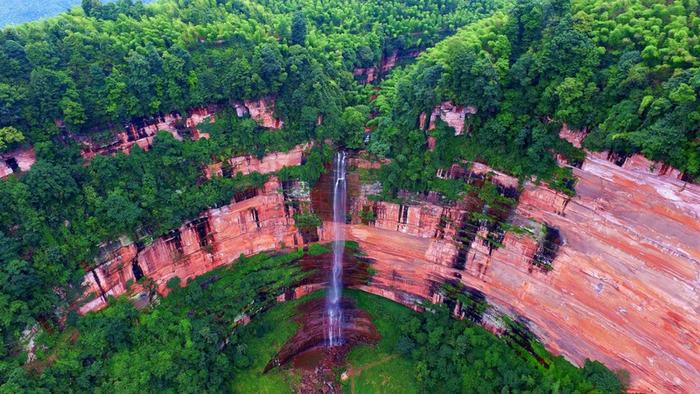 岩壁上层层叠叠的地层纹理,展现了完整的丹霞地貌演化序列,记录了地球从白垩纪到新生代的运动轨迹。赤水丹霞,也因此被称为“解读地球沧桑巨变的天然密码库”。
