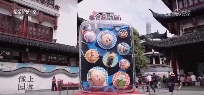 在上海豫园,旅游节期间,“豫园食集”焕新亮相,集结了来自全国各地的近40家餐饮小吃,不仅有非遗老字号,也有米其林精选,为消费者提供一站式地方美食体验。同时,餐饮场景也进行了全面升级,打造出既好吃又好玩的沉浸式互动体验空间。