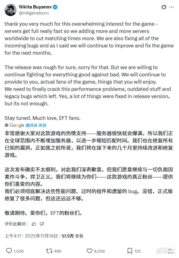 尼基塔就那么招人恨吗?诚然,他带领Battlestate Games(BSG)一手打造出了“搜打撤严父”“撤离射击游戏的先行者”不假。历经九年内测长跑,《逃离塔科夫》的硬核程度和内容积淀,依然没有任何竞品能够超越。