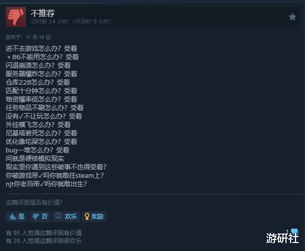 于是,上述的一切经历所带来的痛苦等量转化为怒火,宣泄到制作人尼基塔的头上,化为一句标准的国骂。表现全然不像正式版的塔科夫混到“差评如潮”,多少算是活该。