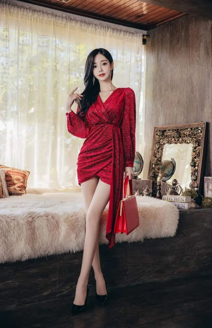 孙允珠不愧为时尚“种草机”, 穿开叉红裙配红包, 太迷人