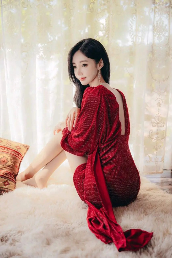 孙允珠不愧为时尚“种草机”,穿开叉红裙配红包,太迷人