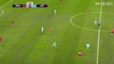第44分钟,德尔加多送直塞,徐虹前插,禁区线附近一脚射门!皮球被蹭了一下偏出了球门↓