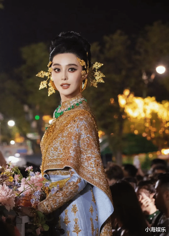 而范冰冰的第二套礼服则更贴合剧情人设,也是马来西亚传统的筒裙,头上则搭配清真头巾。而手臂和耳朵上搭配首饰,筒裙也是很传统很普通的服装。但范冰冰凭借着高颜值和强大的气场,硬是把筒裙穿出了时尚高定款的感觉。不愧是“红毯女王”。
