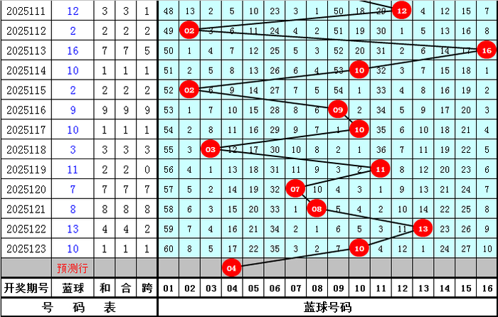 蓝球推荐:最近10期蓝球开出尾数:0出现3次,3出现2次,1、2、7、8、9出现1次,4、5、6出现0次,本期蓝球看好开出偶数号码,关注蓝球04。