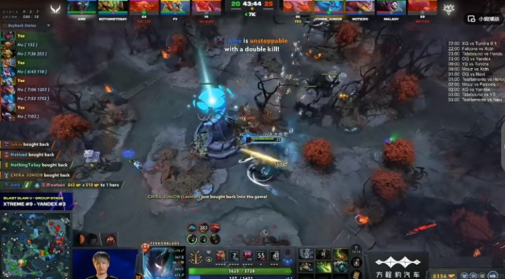 [14分钟]Yandex集合五人又抢掉了XG的14分钟经验符,双方一波2换2之后Yandex追上高地强杀掉了xNova萨尔!Ame的TB则是单带掉了对手的中一塔!