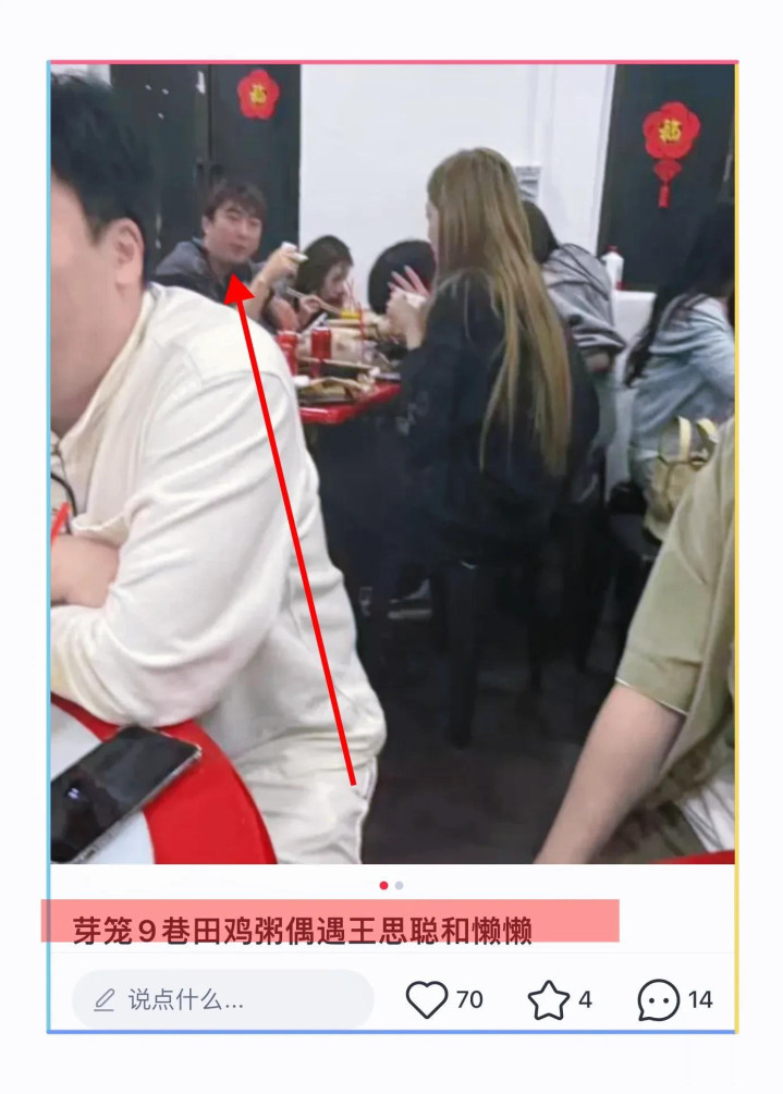 有网友在网上晒出两张照片,在新加坡一家苍蝇馆喝田鸡粥的时候竟然偶遇了王思聪和懒懒,不得不说这真的太有缘分了,很难想象王思聪会带着女朋友现身那么小的餐馆和众人挤在一起喝粥,真的是不容易,不过网友说那家店很有名,想必王校长是带着女友去网红店打卡的! 王思聪烫头了,照片虽然拍的不太清楚可是还是一眼能认出王思聪,网友吐槽偶遇的博主到底是用什么手机,懒懒一头标志性的长发,穿这黑色外套,两个人坐在一起,很甜蜜,想必看了这张照片的网友,终于信了,两个人确实没分手!他俩从去年夏天被拍到一起喂小鹿,如今已经快一...